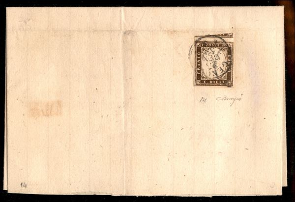Lettera sottofascia affrancata con c.10 terra d'ombra (14) isolato da GENOVA 23 GEN.58, molto raro nel primo mese d'uso
